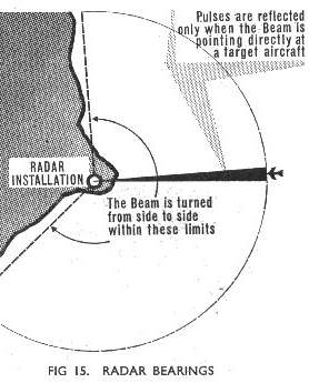 measure the compass bearing of the target. North is used as the reference direction and bearings are given in degrees relative to North (Fig 16). When the radar equipment is carried in a fighter aircraft the bearing of a target is given in degrees to port or starboard of the direction in which the fighter is heading (Fig 17). |