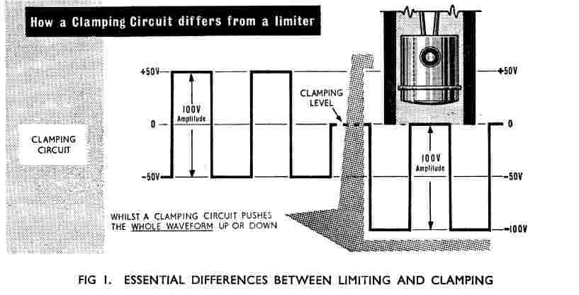 AP 3302 Pt. 3 Section 2 CHAPTER 5 Clamping Circuits Introduction We have seen that limiters prevent a waveform from rising above or falling below a pre-determined voltage by cutting off part of the waveform. However in radar there is also a need to change the reference level of a waveform without reducing its amplitude. Circuits which move waveforms 'up' or 'down' in this way are known as clamping circuits because their effect is to fix or clamp the top or bottom level of the waveform to a required voltage. The difference between limiters and clamping circuits is illustrated in Fig 1.