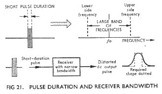 Again, like the p.r.f., the value of pulse duration selected for a radar is a compromise between conflicting factors (Fig 22). Because of this some radars have several values of pulse duration which may be selected as required.